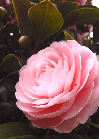 庭の乙女椿の花が一斉に咲き出してピンクのクリームを盛りつけたデコレーションケーキみたいになってます