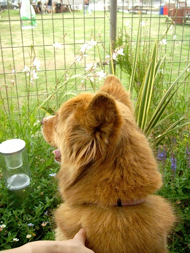 テラス席でランを見学ちゅう犬様\じー/花壇も綺麗