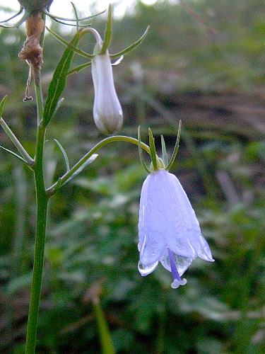 夜来の雨の雫を宿したツリガネニンジンの花がガラスのように透けてました