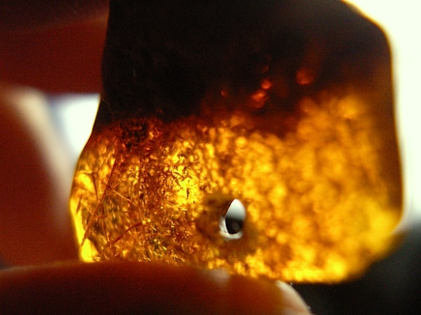 サイフにつけてた琥珀のヒビが気になってきたので、はずして観賞用に移行