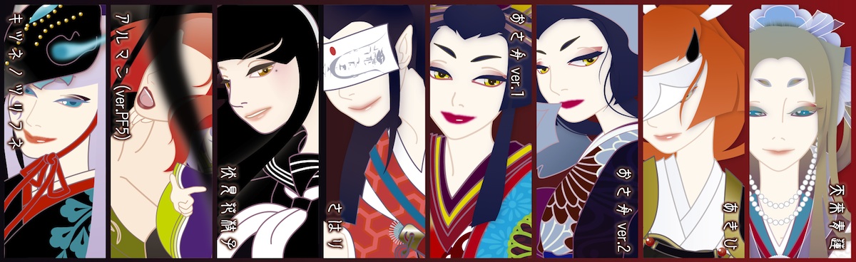 キツネノツリフネと天来青蓮は、目から口までの距離がやや長く、キツネ顔というか少しだけ人外っぽさを心がけた造形、のつもり