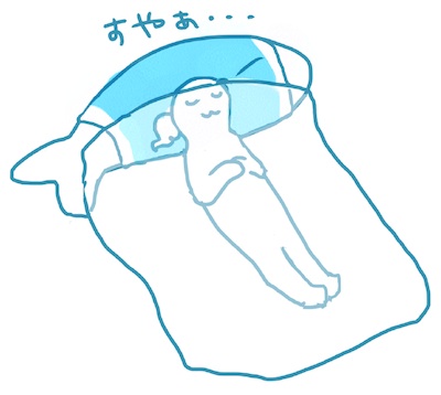 図解(Minは頭の上まで布団をかぶって寝るよ!)