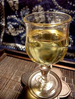 果物というより形而上の花の蜜のような芳しく甘い香りなのに、味はほとんど甘くなく、他の白ワインの酸味ともまた違ってほろ苦くてあとくちはあっさり