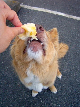 最近ふと気付いたんですが犬様、なんかオヤツの受け取り方がヘン。